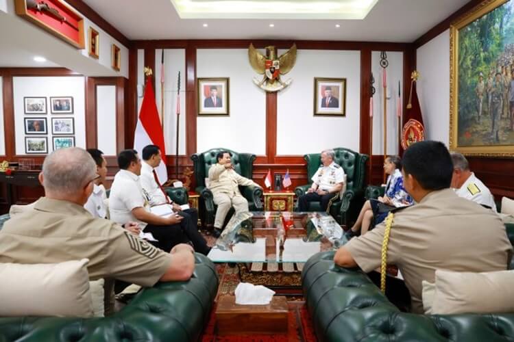 Menhan RI Prabowo Subianto menerima kedatangan Komandan Komando Operasi Khusus (Koopsus) AS Jenderal Bryan P. Fenton beserta delegasi, di kantor Kementerian Pertahanan RI, Jakarta, Kamis (22/8/2024).