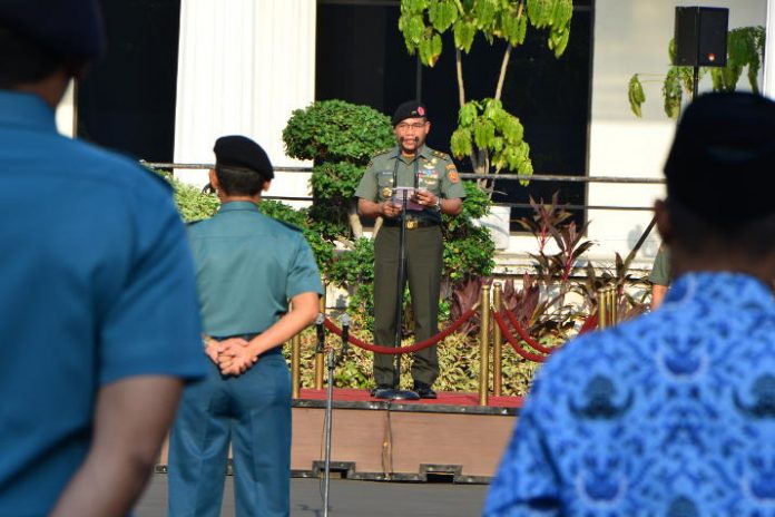 Ini semua merupakan upaya Kementerian Pertahanan dalam peningkatan kemampuan personelnya dalam menghadapi tantangan tugas ke depan. Demikian amanat Menhan RI yang dibacakan Staf Ahli Menhan Bidang Keamanan Mayjen TNI Eko Budi Supriyanto pada upacara bendera bulanan, Senin (18/9), di lapangan apel Bhinneka Tunggal Ika Setjen Kemhan.
