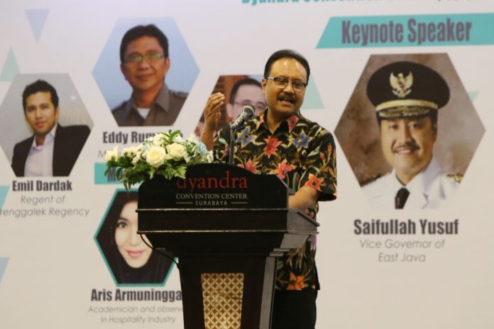 Pernyataan tersebut disampaikan Wakil Gubernur Jawa Timur Drs. H. Saifullah Yusuf saat menjadi Keynote Speaker acara CEO Forum yang diadakan oleh Fakultas Magister Management Universitas Airlangga (Unair) Surabaya di Gedung Dyandra Jl. Basuki Rahmad Surabaya, Selasa (19/9).