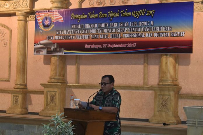 Surabaya,Nawacita.co – Tablig akbar yang menampilkan Imam Besar Mesjid Nasional Al Akbar Surabaya, Dr. K.H. Ahmad Muzakky Al Hafidz, M.A., mengisi acara peringatan Tahun Baru Hijriah 1439 H/2017 di Markas Komando Pangkalan Utama TNI AL V, Surabaya, Â Rabu (27/9/2017).