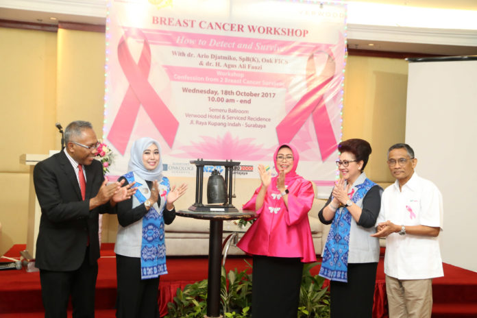 “Kaum perempuan punya peran penting dalam pembangunan, melalui deteksi dini pencegahan kanker payudara ini menjadi bagian dari mewujudkan keluarga, masyarakat dan bangsa yang maju, kuat dan sehat,” terang Fatma, sapaan lekatnya saat membuka Breast Cancer Workshop “How to Detect & Survive” di Verwood Hotel & Serviced Recidence Surabaya, Rabu (18/10).