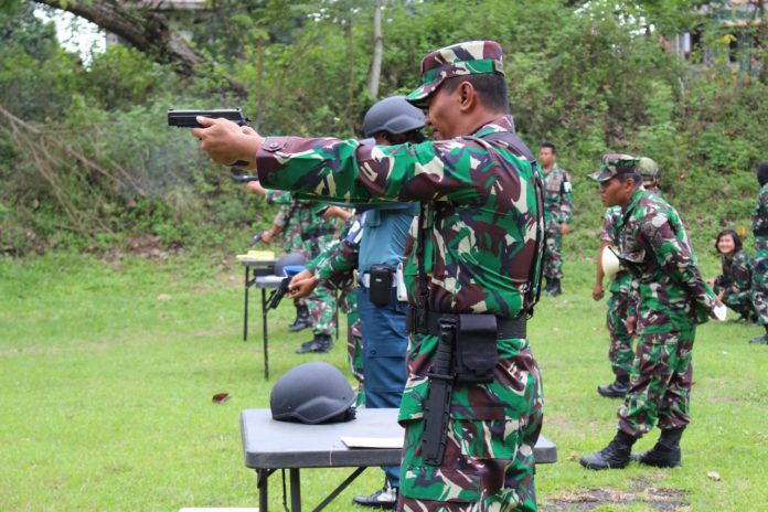 Latihan yang dilaksanakan antara lain menembak dengan senjata Pistol yaitu jenis Sigsauer dan G2 Combat, personil melaksanakan penembakan dengan posisi berdiri jarak 10 meter, 15 meter dan 25 meter, dengan 6 butir peluru untuk tembakan penilikan dan 10 butir peluru tembakan penilaian untuk tiap-tiap jarak penembakan.