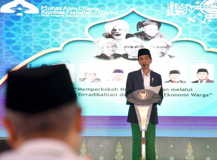 Mataram,Nawacita.co – Presiden Joko Widodo mengapresiasi peran Nahdlatul ‘Ulama (NU) sebagai organisasi Islam terbesar di Indonesia yang berhasil membawa semangat persatuan dalam kehidupan masyarakat di Tanah Air. Apresiasi tersebut disampaikan Presiden saat menghadiri Pembukaan Musyawarah Nasional (Munas) Alim Ulama dan Konferensi Besar Nahdlatul Ulama yang digelar pada Kamis (23/11/2017) di Masjid Raya Hubbul Wathan, Mataram, Nusa Tenggara Barat (NTB).