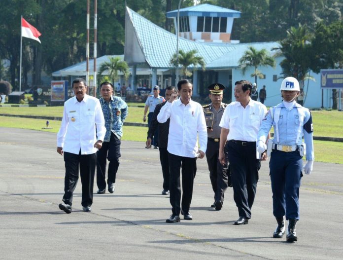 Turut mendampingi Presiden dalam penerbangan menuju Kabupaten Tapanuli Utara adalah Menteri Koordinator Bidang Kemaritiman Luhut Binsar Pandjaitan, Menteri Pekerjaan Umum dan Perumahan Rakyat Basuki Hadimuljono, Sekretaris Kabinet Pramono Anung, Kepala Staf Kepresidenan Teten Masduki dan Gubernur Sumatera Utara Tengku Erry Nuradi. (Humas Kemensetneg)