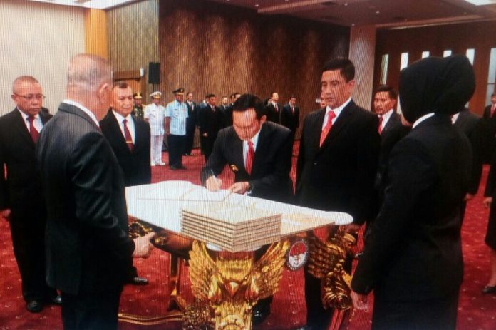 Jakarta,Nawacita.co – Menteri Pertahanan Ryamizard Ryacudu memimpin Upacara Pelantikan dan Serah Terima Jabatan (Sertijab) Eselon I dan II di lingkungan Kementerian Pertahanan, Senin (15/1) di kantor Kemhan, Jakarta. Jabatan Eselon I Kemhan yang diserahterimakan yakni Direktur Jenderal Strategi Pertahanan (Dirjen Strahan) Kemhan, Dirjen Perencanaan Pertahanan (Renhan) Kemhan dan Dirjen Potensi Pertahanan (Pothan) Kemhan. Sedangkan untuk jabatan Eselon II Kemhan yakni Kepala Biro Tata Usaha Sekretariat Jenderal (Karo TU Setjen) Kemhan.