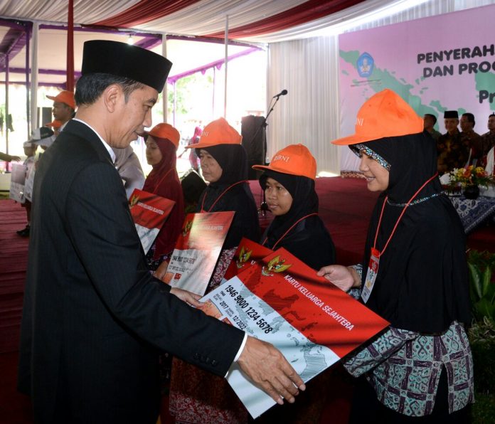 Pekalongan,Nawacita.co (15 Januari 2018) – Presiden Joko Widodo menyalurkan bantuan sosial Program Keluarga Harapan (PKH) di halaman SMAN 1 Kajen – Kabupaten Pekalongan, Senin (15/1). Sebanyak 1000 keluarga penerima manfaat (KPM) PKH hadir dalam acara tersebut.