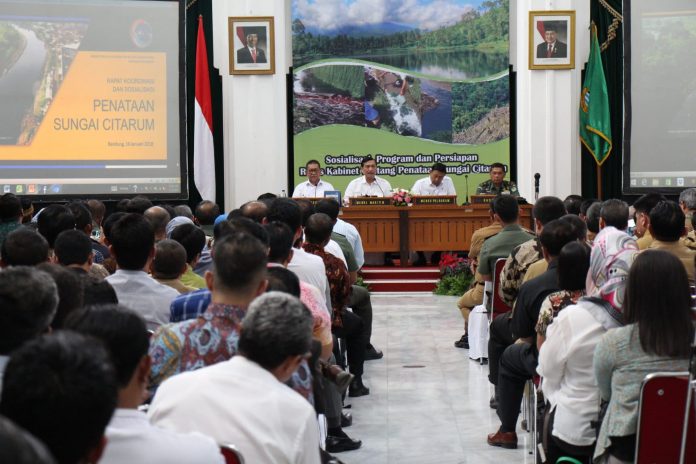 Bandung,Nawacita.co – Menteri Koordinator Bidang Kemaritiman, Luhut Pandjaitan memimpin Rapat Koordinasi dan Sosialisasi Penataan Sungai Citarum, dengan didampingi oleh Menteri Koordinator Politik, Hukum dan Keamanan, Wiranto, Wakil Gubernur Jawa Barat, Dedy Mizwar serta Panglima Kodam Siliwangi, Mayjen TNI Doni Monardo.