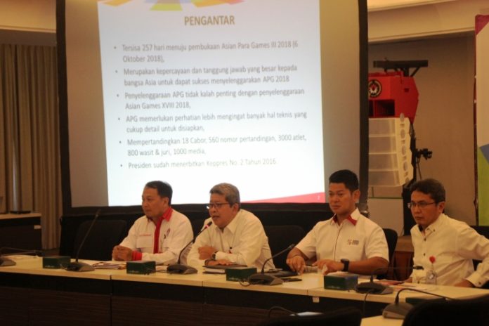 Jakarta,Nawacita.co -(22/01) – Penyelenggaraan Asian Para Games (APG) III 2018 tidak kalah pentingnya dengan penyelenggaraan Asian Games XVIII 2018. Sisa 257 hari menuju pembukaan APG III 2018 (6 Oktober 2018) pun dimanfaatkan panitia (INAPGOC) beserta K/L terkait untuk mempersiapkan sebaik-baiknya penyelenggaraannya.