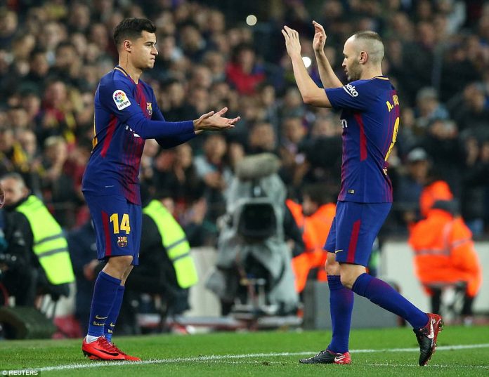 Barcelona (4-3-1-2): 1-Marc-Andre ter Stegen; 2-Nelson Semedo (20-Sergi Roberto 52′), 23-Samuel Umtiti, 3-Gerard Pique, 19-Lucas Digne (18-Jordi Alba 52′); 14-Philippe Coutinho (17-Paco Alcacer 66′), 4-Ivan Rakitic, 8-Andres Iniesta; 15-Paulinho; 10-Lionel Messi, 9-Luis Suarez.