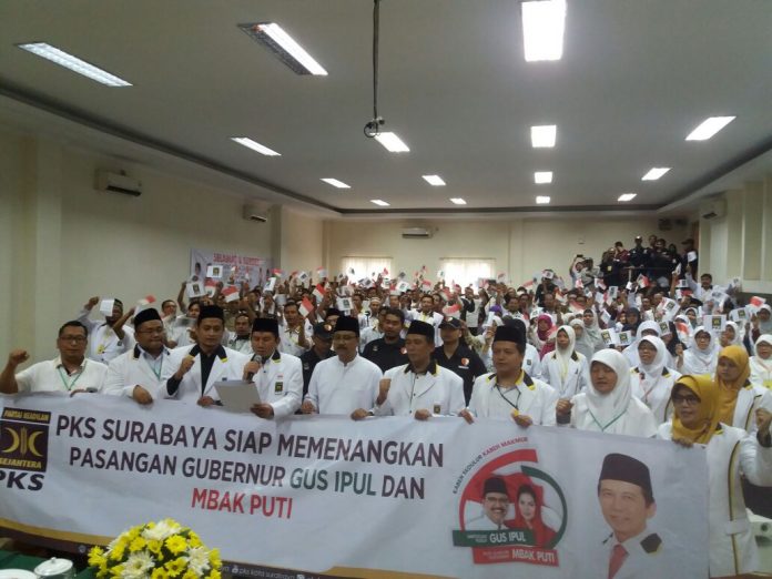 Nawacita.co -Dewan Pengurus Daerah Partai keadilan Surabaya ( DPD PKS Surabaya) Mendeklarasikan serta memberi dukungan Penuh kepada kedua Pasangan yaitu Gus Ipul dan Mbak Puti untuk Memenangkan pilkada Jatim 2018 Nanti. acara deklarasi ini bersamaan dengan Rakerda tahunan 2018 – 2019.dengan mengusung Tema : Soliditas untuk kemenangan yang barokah, Gelaran acara ini diadakan di Hotel Sahid Surabaya Minggu (28/01/2018)Sore.