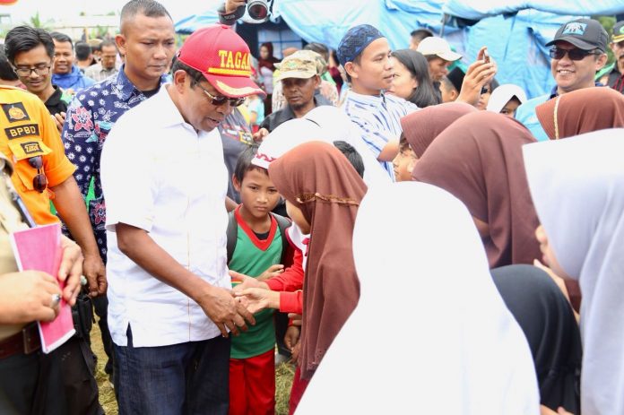 Jakarta,Nawacita.co –  (28 Januari 2018) – Menteri Sosial Idrus Marham bergegas menghampiri tenda bermain anak-anak, sesaat tiba di lokasi pengungsian korban gempa di Desa Kuta, Kecamatan Megamendung, Kabupaten Bogor, Jawa Barat, Sabtu siang (27/1).