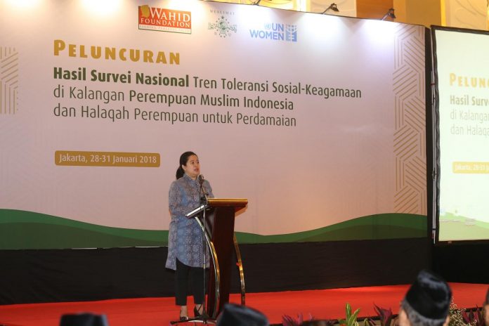 Jakarta, Nawacita.co – (29/01)– Menteri Koordinator Bidang Pembangunan Manusia dan Kebudayaan (Menko PMK) hari ini secara resmi membuka seminar dan peluncuran hasil survey nasional tren toleransi sosial keagamaan di kalangan perempuan muslim indonesia dan halaqah perempuan untuk perdamaian,  yang berlangsung di Hotel JS luwansa, Kuningan, Jakarta Selatan 29 Januari 2018.