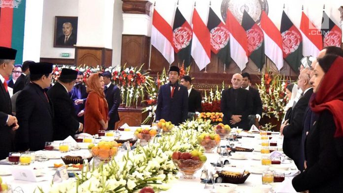 Lalu, mantan Gubernur DKI Jakarta itu memberikan peci hitam yang ukurannya telah disesuaikan dengan kepala Presiden Afghanistan.