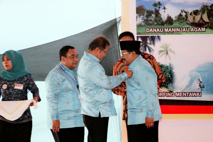 Nawacita.co – Gubenur Jatim Dr. H. Soekarwo menerima penghargaan pena emas pada puncak peringatan Hari Pers Nasional/HPN ke-32 tahun 2018, yang diselenggarakan di Muaro Lasak, kawasan Danau Cimpago, Padang, Sumatera Barat, Jumat (09/02). Penghargaan berupa pin pena emas ini disematkan secara langsung oleh Menteri Kominfo RI Rudiantara dihadapan Presiden RI Jokowi.