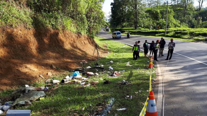 Bekas Kecelakaan Bus Maut Penuh Sampah Penumpang