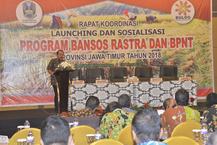 “Rastra dan BPNT satu kesatuan dan tidak ada uang tebusnya jadi gratis tinggal ambil,” kata Sukardi, sapaan lekatnya saat membuka Rakor Launching dan Sosialisasi Program Bansos Rastra dan BPNT Provinsi Jatim TA 2018 di Hotel Wyndham Surabaya, Kamis (15/2).