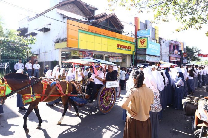 Nawacita.co – Pemandangan menarik terlihat di rangkaian acara Gebyar Pesona Budaya Garut 2018. Bertempat di SMAN 1 Garut, Jawa Barat, Menteri Pariwisata (Menpar) Arief Yahya diarak dengan menggunakan Delman menuju acara puncak di Lapangan GOR Bela Diri, Garut, 22 Februari 2017.