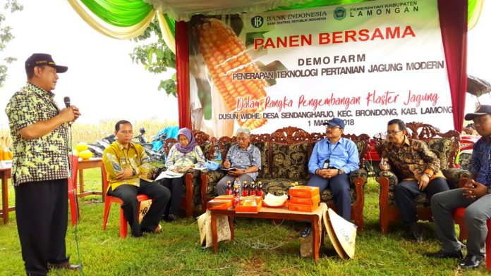 Nawacita.co – Bank Indonesia Provinsi Jawa Timur bersama Pemerintah daerah Kabupaten Lamongan melakukan Panen raya Bersama Komoditas Jagung di lokasi demo farm kegiatan panen bersama ini diadakan di Desa Widhe.Kecamatan Brondong,Kabupaten Lamongan,Turut Hadir diantaranya Asisten Direktur Bank Indonesia Andy Indra Prayogo , Asisten 1 Kabupaten Lamongan Heru Widi dan Kepala Dinas Tanaman Pangan serta Sekretaris Bappeda Kabupaten Lamongan. kamis (1/3) siang.