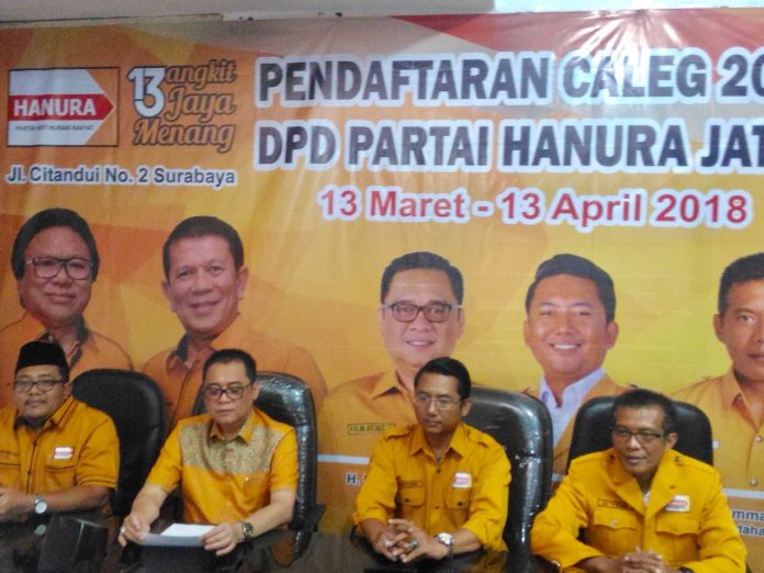 Nawacita.co – Partai Hati Nurani Rakyat (Hanura) Jawa Timur (Jatim) menargetkan perolehan kursi legislatif naik 300 persen dibanding Pemilu Legislatif 2014 lalu. Target tersebut diyakini tercapai, karena struktur partai sudah sampai ke tingkat ranting (desa).