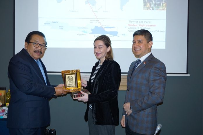 Nawacita.co – Gubernur Jatim Dr. H. Soekarwo mendorong motivasi investasi dan bisnis pengusaha Georgia ke Jatim. Banyak alasan kenapa hal tsb perlu dilakukan, a.l. sampai saat ini belum ada investasi Georgia di Jatim, beragam jaminan kemudahan investasi di Jatim, serta upaya penyeimbangan neraca perdagangan dua pihak yang Jatim selalu surplus selama ini.