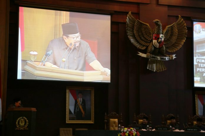 Optimisme itu disampaikan Pakde Karwo, sapaan akrab Gubernur Jatim saat memberikan Jawaban Eksekutif Atas Pemandangan Fraksi terhadap Laporan Keterangan Pertanggungjawaban Gubernur Tahun Anggaran 2017 dalam Sidang Paripurna DPRD di Gedung DPRD Jatim, Selasa (17/4).