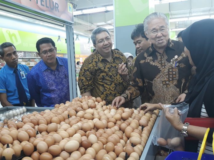 Nawacita.co – Menteri Perdagangan Enggartiasto lukito berkunjung ke salah satu pertokaan retail modern yang berada didaerah Surabaya guna sidak harga bahan pokok untuk menghadapi bulan suci Ramadhan dan lebaran 2018 sebentar lagi. Kegiatan ini berlangsung di supermarket hypermart Pertokaan Cito Surabaya kamis (19/04) siang. Dalam kesempatan itu Enggartiasto lukito juga didampingi oleh Kepala Disperindag Prov Jatim Moch Ardi P serta pejabat kementrian perdagangan, meninjau langsung serta mengecek harga bahan pokok yang ada di dalam supermarket diantaranya telur, beras, ayam dan daging beku, serta gula dan juga minyak goreng.