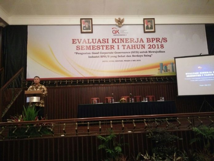 Nawacita.co – Kantor Otoritas Jasa Keuangan ( OJK ) Regional 4 jawa timur mengadakan evaluasi kinerja dengan BPR dan BPRS Triwulan 1 Tahun 2018. Kegiatan ini berlangsung di convention hall hotel Senyiur, Prigen Pasuruan kamis 3/05/2018 siang. Dalam pertemuan ini di hadiri oleh direksi dan komisaris dari 116 BPRS Dan 13 BPR yang di bawah pengawasan otoritas jasa keuangan (OJK). Dalam pertemuan ini mengangkat tema ” Penguatan Good Coporate Governance ( GCG) Untuk Mewujudkan indusrtri BPR / S yang Sehat Dan berdaya Saing.’’ Bertujuan melakukan Capacity Building mengenai peningkatan fungsi ke kepatuhan dan audit Internal BPR Dan BPRS Dalam rangkan penguatan GCG