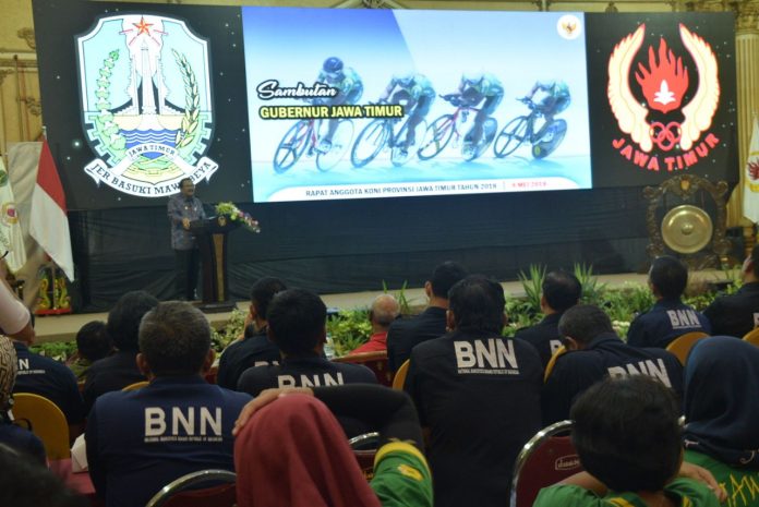 Hal tersebut disampaikan Gubernur Jawa Timur Dr. H. Soekarwo yang akrab disapa Pakde Karwo saat membuka Rapat Anggota Komite Olahraga Nasional (KONI) Provinsi Jatim Tahun 2018 di Hotel Utami Sidoarjo, Selasa (8/5) sore.