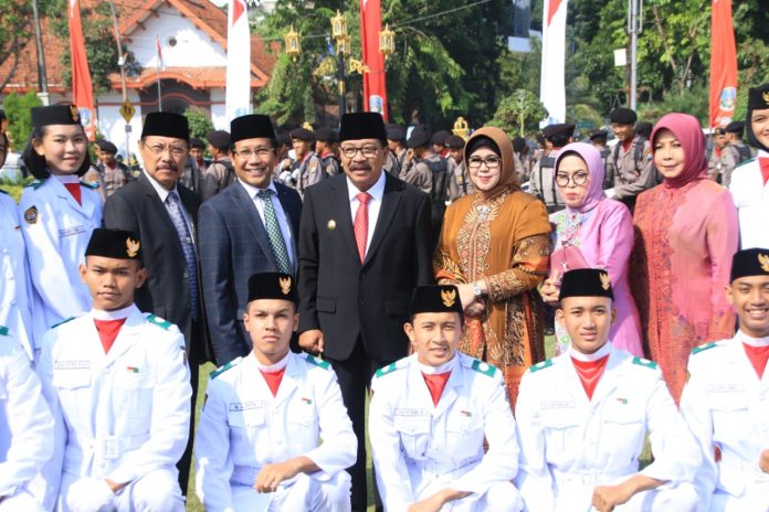 “Pancasila adalah berkah indah yang diberikan Tuhan Yang Maha Esa kepada masyarakat Indonesia melalui perenungan dan pergulatan,” ujar Gubernur Jatim Dr. H. Soekarwo membacakan sambutan Presiden RI pada Upacara Peringatan Hari Lahir Pancasila, di Gedung Negara Grahadi, Jumat (1/6).