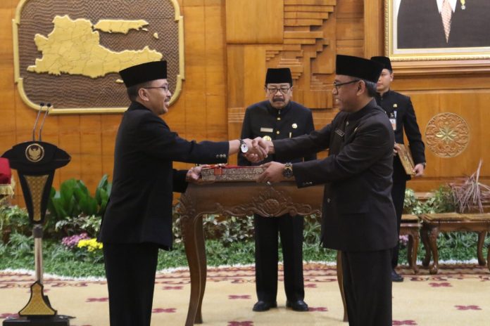 Nawacita.co – Gubernur Jatim, Dr. H. Soekarwo atau yang akrab disapa Pakde Karwo melantik 10 orang pejabat tinggi pratama (istilah lama pejabat eselon II) di lingkungan Pemprov Jatim, di Gedung Negara Grahadi Surabaya, Jum’at (29/6). Pelantikan ini berdasarkan Surat Keputusan Gubernur Jatim nomor. 821.2/952/204/2018 tanggal 28 Juni 2018.