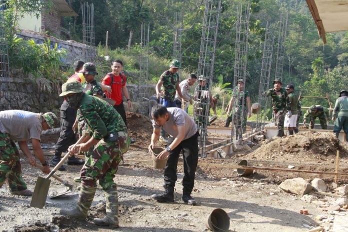 Nawacita.co – Memasuki hari kelima, TNI Manunggal Membangun Desa (TMMD) Reguler Ke-102 TA. 2018 Kodim 0815 Mojokerto yang berlokasi di Desa Jembul Kecamatan Jatirejo Kabupaten Mojokerto, Jawa Timur, capaian pengerjaan sasaran fisik maupun non fisik banyak mengalami kemajuan.