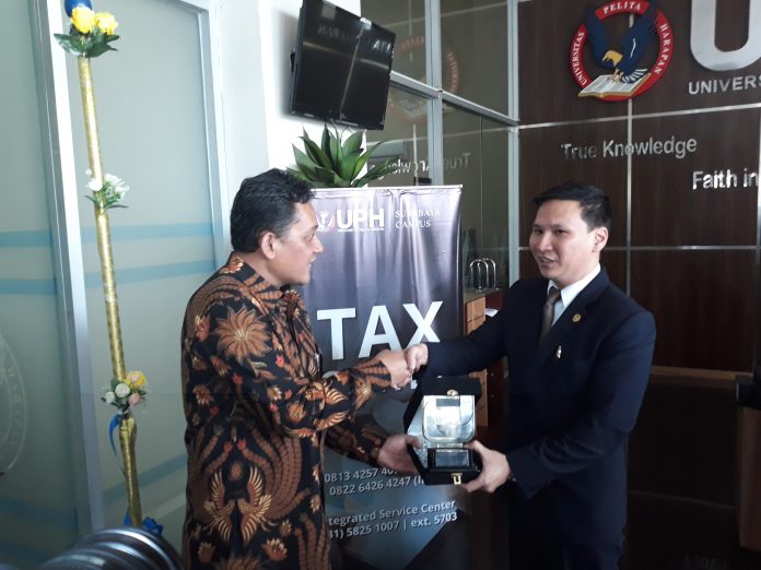 Surabaya, Nawacita.co – Universitas Pelita Harapan (UPH) Surabaya meresmikan Tak Centre di Gedung di Student Lounge UPH di Jl A Yani , Surabaya, Kamis (19/7). Peresmian Tax center ini dilakukan oleh Kepala Bidang P2 Humas Kanwil DJP Jawa Timur 1, Heru Budhi Kusuma SE MM didampingi oleh Dr Ronald ST .MM Wakil Rektor Bidang Akademik Universitas Pelita Harapan (UPH) Surabaya.