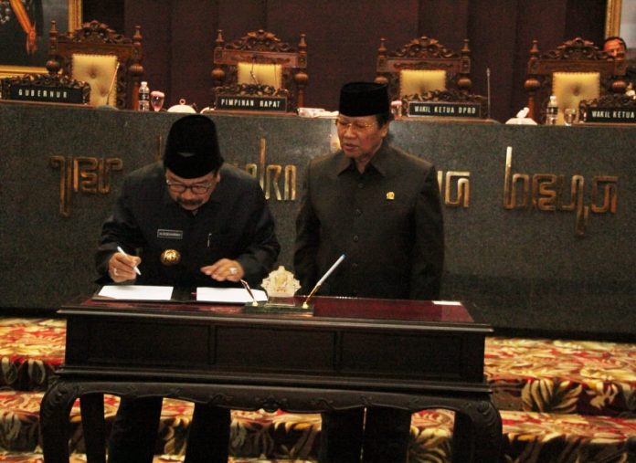 Persetujuan ini dituangkan melalui penandatanganan keputusan persetujuan bersama terhadap raperda tentang perubahan keempat atas Perda Nomor 8 Tahun 2013 tentang penyertaan modal saat pelaksanaan Sidang Paripurna di Gedung DPRD Prov. Jatim, Jl. Indrapura Surabaya, Jum’at (3/8).