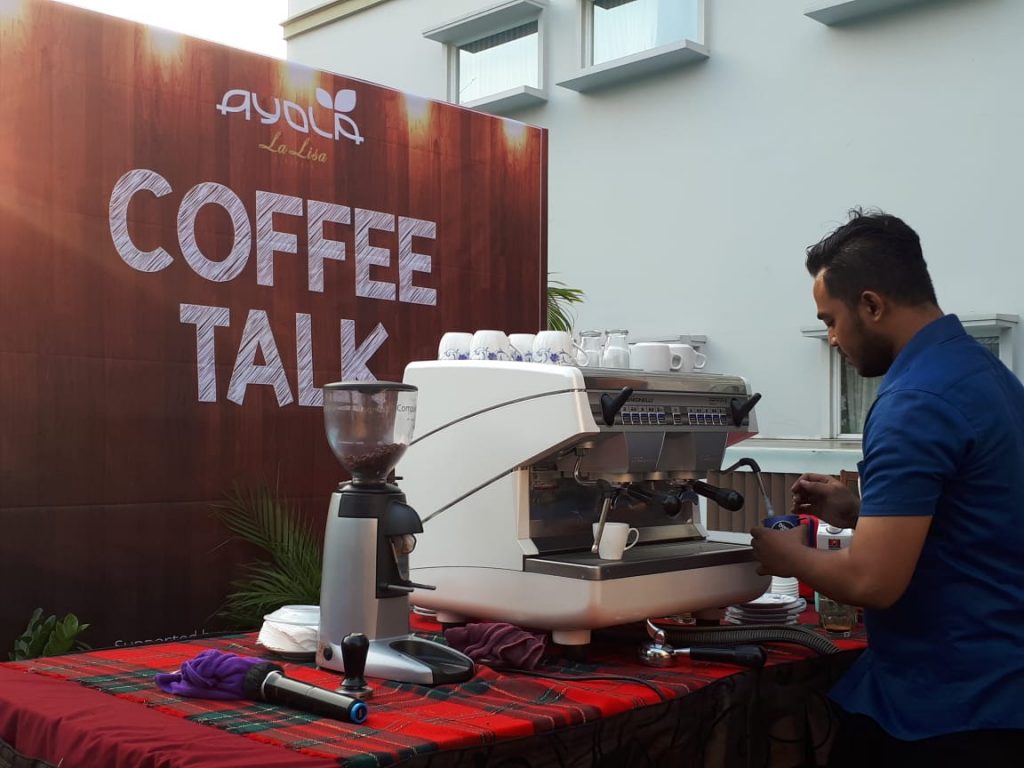 Surabaya, Nawacita.co -11 Agustus 2018  Meminum kopi saat ini bukan hanya menjadi sebuah kebutuhan untuk mengatasi rasa kantuk, namun sudah menjadi tren gaya hidup anak muda zaman sekarang. Hari ini (11/8), Ayola La Lisa bekerjasama dengan PT. Bahana Genta Viktory serta Dinasti Ming Barista Community mengadakan acara Coffee Talk. Kegiatan kumpul bersama pecinta kopi membicarakan apapun tentang kopi. Tak hanya berbagi cerita soal kopi, para peserta juga akan diajarkan bagaimana cara membuat latte art dari barista profesional yang telah dihadirkan.