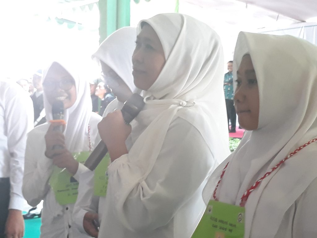 Kehadiran Khofifah di kampus B Unusa ini disambut riuh para maba. Bahkan maba yang bisa tampil ke depan, diberi hadiah oleh mantan Menteri Sosial RI di era Jokowi ini.