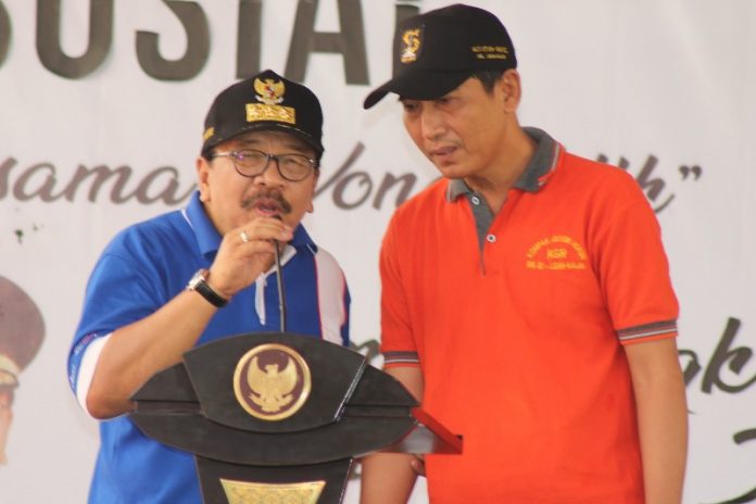 Surabaya, Nawacita.co – Gubernur Jatim Dr. H. Soekarwo membagikan 1.700 paket sembako kepada warga di sekitar Kecamatan Lakarsantri, Surabaya pada acara Bakti Sosial dalam rangka Hari Jadi ke-73 Provinsi Jawa Timur, bertempat di lapangan Kelurahan Lidah Kulon, Kecamatan Lakarsantri, Surabaya, Jum’at (26/10) pagi.