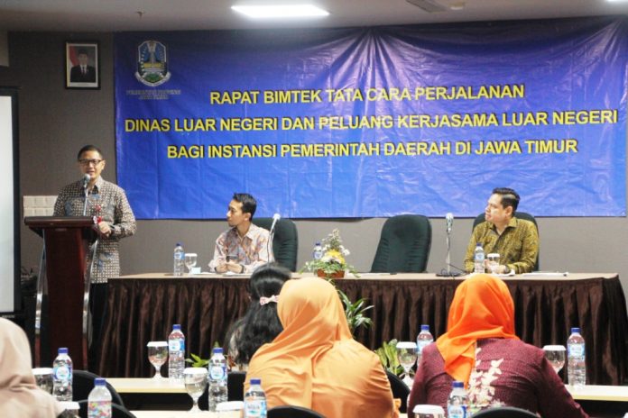 Surabaya,Nawacita.co Kepala Biro Humas dan Protokol Setdaprov Jatim, Aries Agung Paewai, S.STP, MM memimpin langsung Bimbingan Teknis Tata Kelola Perjalanan Dinas Luar Negeri (PDLN) dan peluang Kerjasama Luar Negeri (KSLN) bagi instansi Pemerintah Daerah di Jatim, bertempat di Hotel Aria Centra Surabaya, Selasa (30/10).