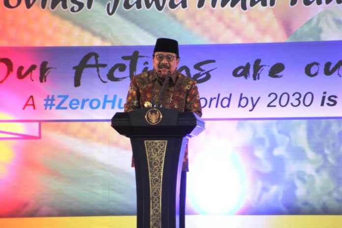 “Jatim masih menjadi tulang punggung ketahanan pangan nasional, dimana dari 17 persen saat ini naik menjadi 19,3 persen secara riil terhadap nasional. Jadi seperlima kekuatan ketahanan pangan nasional ada di Jatim,” kata Pakde Karwo, sapaan lekat Gubernur Jatim saat peringatan Hari Pangan Sedunia ke-38 Provinsi Jatim Tahun 2018 di Jatim Expo Surabaya, Senin (5/11).