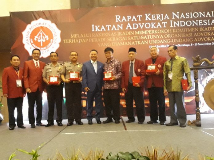 Surabaya,Nawacita.co – Perhimpunan Advokat Indonesia ( Peradi) mengelar Rapat kerja nasional Ikadin yang diiikuti 300 peserta tersebar berbagai daerah Jumlah tersebut berasal dari 100 Dewan Perwakilan Cabang (DPC) yang tersebar di seluruh Indonesia. seperti DPC Ikadin Depok, Aceh, yogyakarta, Jambi, Banjarmasin, Jaksel, Medan, Palu, Serang banten dan Surabaya.