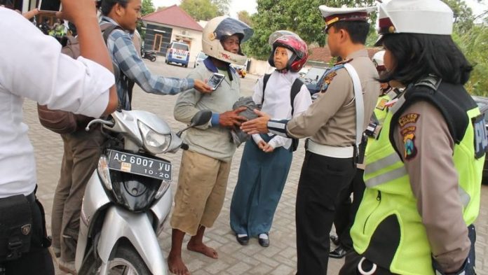 Nganjuk,Nawacita – Saat razia berlangsung, banyak wajah pengguna jalan yang kecewa karena terkena tilang. Tetapi di Nganjuk, ada juga pengendara yang tampak gembira. Ada apa ya?