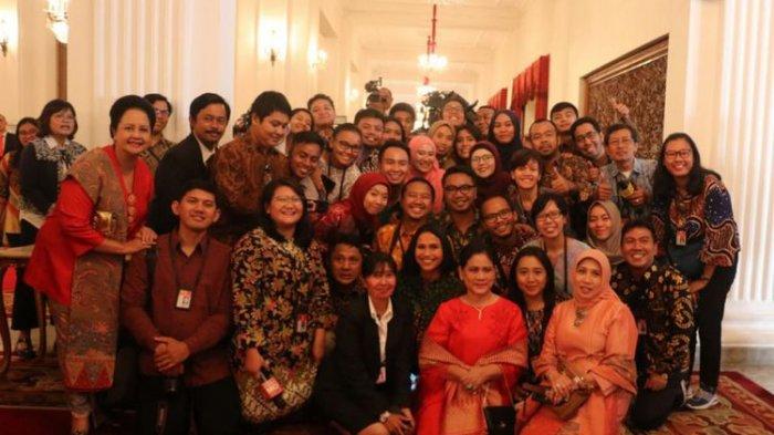 “Saya foto bareng ya,” kata Iriana di Istana Negara, Jalan Veteran, Jakarta Pusat, Kamis (22/11/2018).