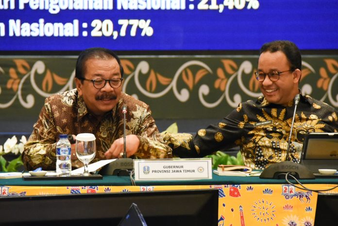 Jakarta,nawacita.co – Gubenur Jawa Timur, Dr. H. Soekarwo yang juga menjabat sebagai Ketua Umum Asosiasi Pemerintah Provinsi seluruh Indonesia (APPSI) berbagi strategi sukses meningkatkan perdagangan antar daerah yang dilaksanakan di wilayahnya. Berbagi sukses tersebut disampaikan Pakde Karwo – sapaan akrab Gubernur Jatim dihadapan para gubernur se-Indonesia saat memimpin Rapat Kerja APPSI di Hotel Borobudur Jakarta, Kamis (6/12) siang.