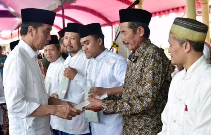“Di Jakarta ada tanah wakaf, sudah dibangun masjid yang gede. Letaknya agak di pusat kota. Dulunya enggak ada masalah, tapi belum pegang sertifikat. Karena harga tanah sudah Rp120 juta (per meter persegi) ahli waris mulai ngutik-ngutik. Nah, masalah (muncul),” cerita Presiden saat menyerahkan sertifikat hak atas tanah wakaf di Masjid Ar-Rahmah, Desa Prayungan, Kecamatan Sawoo, Kabupaten Ponorogo, Jumat, 4 Januari 2019.