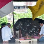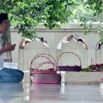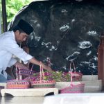 Selama beberapa waktu Kepala Negara terlihat bersimpuh dan memanjatkan doa. Presiden juga menabur sekaligus membereskan bunga yang terserak di atas makam.