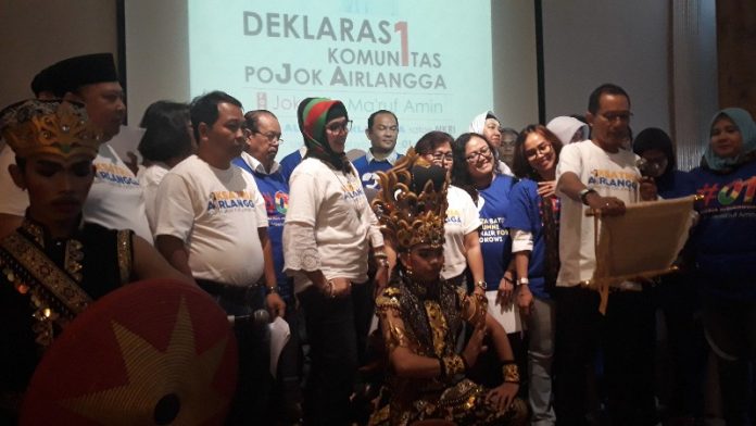 Surabaya, Nawacita.co – Komunitas Pojok Airlangga mendeklariskan untuk mendukung pasangan calon presiden dan wapres Joko Widodo – Ma’ruf Amin di Hotel Mercury Grand Mirama Jl Raya Darmo Surabaya pada hari Jum’at s (11/1). Siang Deklarasi dukungan pasangan 01 dihadiri kurang lebih 150 orang oleh alumni Unair.
