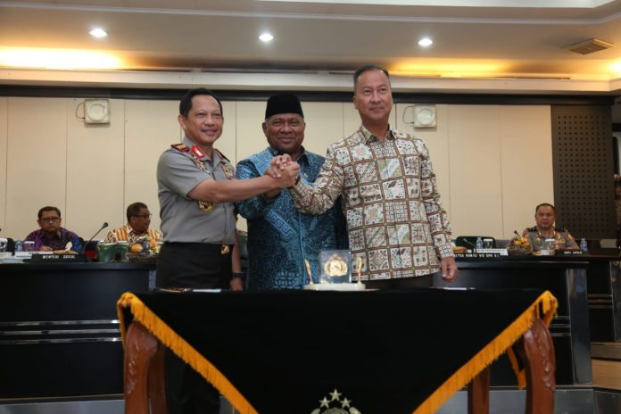 Jakarta (11 Januari 2019), Nawacita – Menteri Sosial RI Agus Gumiwang Kartasasmita bersama Kepala Kepolisian Republik Indonesia Jenderal (Pol) Tito Karnavian sepakat untuk bersama-sama mengamankan pelaksanaan penyaluran bantuan sosial yang ditandai dengan penandatanganan Nota Kesepahaman yang berlangsung di Mabes Polri Jl Trunojoyo, Jakarta, Jumat.