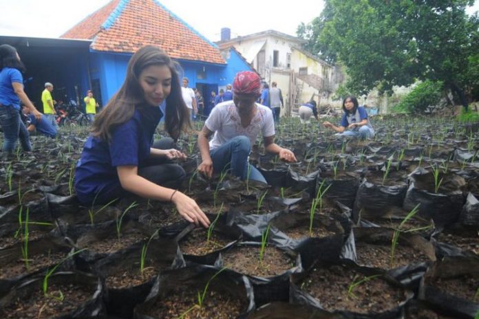 Surabaya,Nawacita – Manohara Odelia Pinot menggandeng emak-emak di Surabaya menanam tumbuhan demi melestarikan lingkungan. Selain itu, dia juga mengajak masyarakat mengurangi plastik.