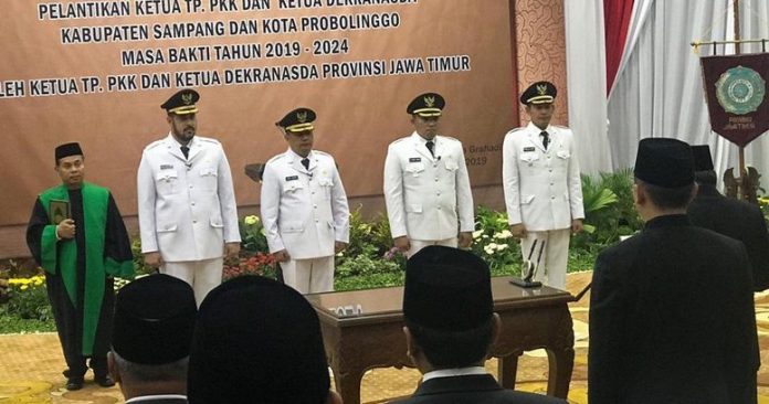 Surabaya,Nawacita – Gubernur Jawa Timur Soekarwo melantik Wali Kota/Wakil Wali Kota Probolinggo serta Bupati/Wakil Bupati Sampang di Gedung Negara Grahadi. Para pejabat itu diambil sumpah jabatan oleh Gubernur secara bersamaan.