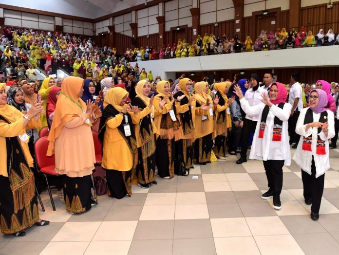 Banda Aceh, Nawacita – Menutup kegiatan kunjungan kerja di Provinsi Aceh, Ibu Negara Iriana Joko Widodo didampingi Ibu Mufidah Jusuf Kalla, dan ibu-ibu anggota OASE-KK meninjau pelatihan akbar dan parenting ‘Praktik Pendidikan Karakter dan Pendekatan Saintifik yang Sukses Membangun Akhlak, Daya Pikir Kritis, dan Kreativitas Anak’.