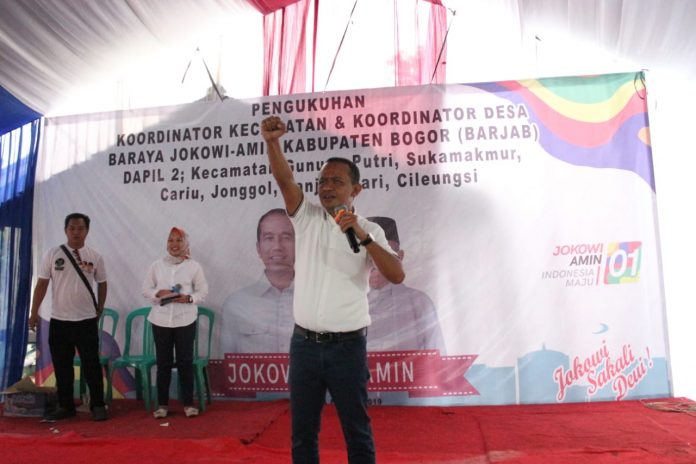 Ketua BARJAB, Irfan Darajat menghimbau para relawan agar bersungguh sungguh mengajak masyarakat Bogor untuk memenangkan Paslon nomor 01, Jokowi-Ma’ruf Amin. “Jangan lupa, kita ajak keluarga kita, saudara saudara kita untuk mendukung pasangan Jokowi-Ma’ruf Amin,” tegasnya saat memberikan sambutan.